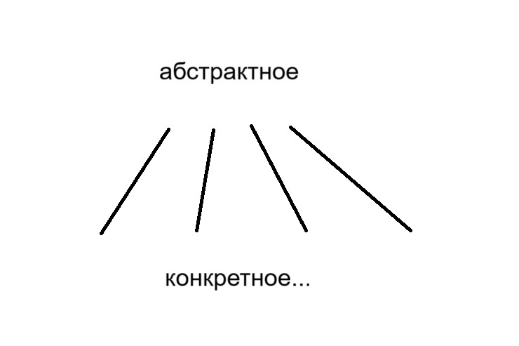 Так, общее (а точнее, абстрактное) только на конкретных примерах и можно показать. Для этого нужен не один пример, а несколько - чтобы в них можно было увидеть это самое "общее". Если проследите по теме, я всегда ИМЕННО ПОЭТОМУ и показываю обычно сразу несколько примеров, что с музыкой, танцами... что с треугольниками и фигурами.. Берёте эти все аналогичные примеры - и в голове у себя синтезируете (выявляете, что же такого общего в них есть), тем самым получая абстрактное понятие. И чем выше уровень обобщения, тем выше уровень абстракции. Любые физические законы есть Абстрактное, именно потому, что они все подчиняют себе множество конкретных случаев. А тем более философия! Если Вы не можете мыслить абстрактно, то философ из Вас всегда будет только никудышный. Потому как философия это наука ОБОБЩЕНИЙ! Она - зрит в корень! В самую суть! Это и есть Абстрактное, Буч!