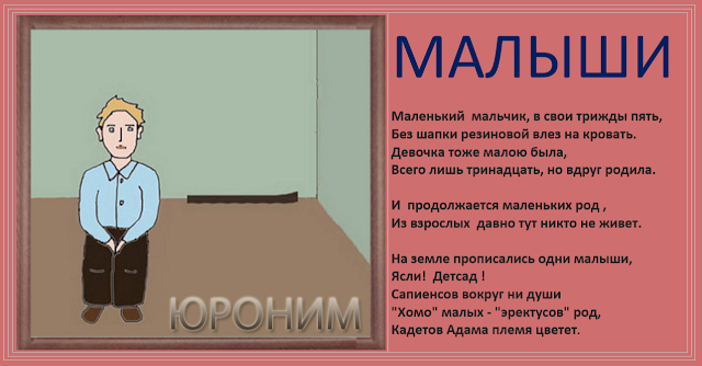 И я о том же пишу - у тебя в голове (в мозгах) крутится и шумит смесь роя пчел и детского дерьма, как у всякого неизлечимо помешанного, вот и порождает такие извращенные образы. Лечись хотя бы для удержания состояни без изменений, оно сейчас вообщем-то - безвредное, но може закончится плохо.