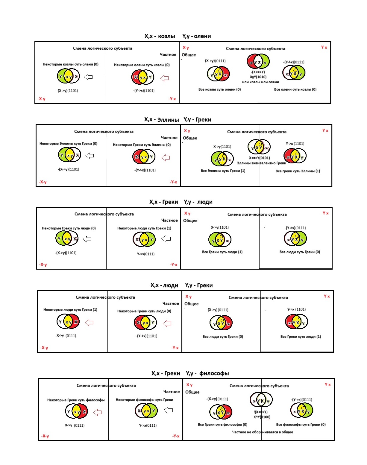 2. Для наглядности необходимо представить логику субъектов не в виде набора чебурашек, а привести к форме похожей на логический квадрат.