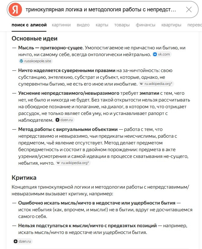 органом мысли/ничто является сама мысль/ничто, и иного субстрата, субъекта, предиката у мысли не было, нет и не будет.