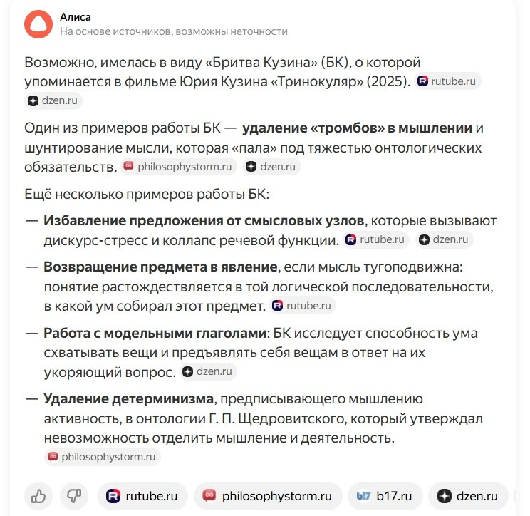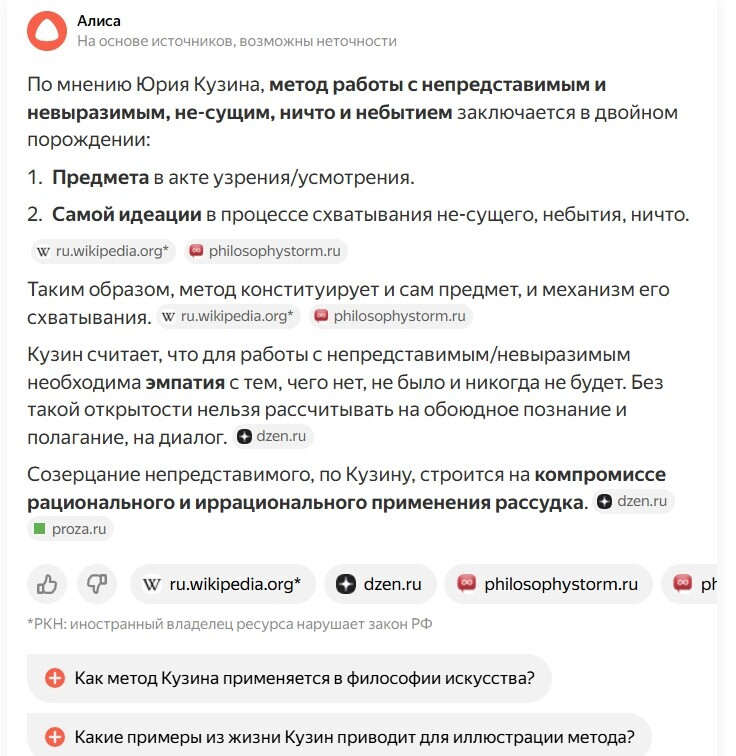 Понятно, Дилетант Ксари! эту мысль Юрий Кузин вам передал. правда с грамматическими ошибками. но это не беда. алиса исправит.